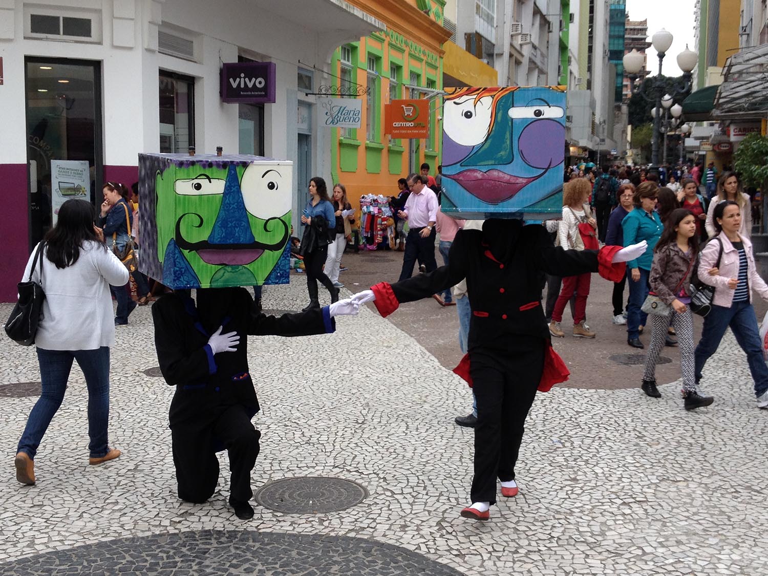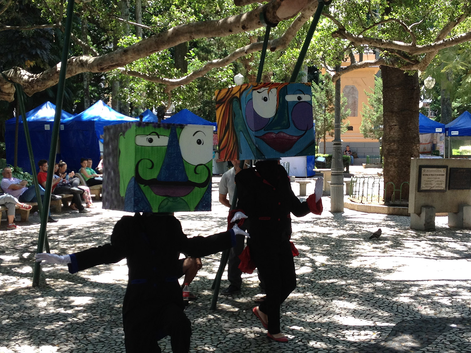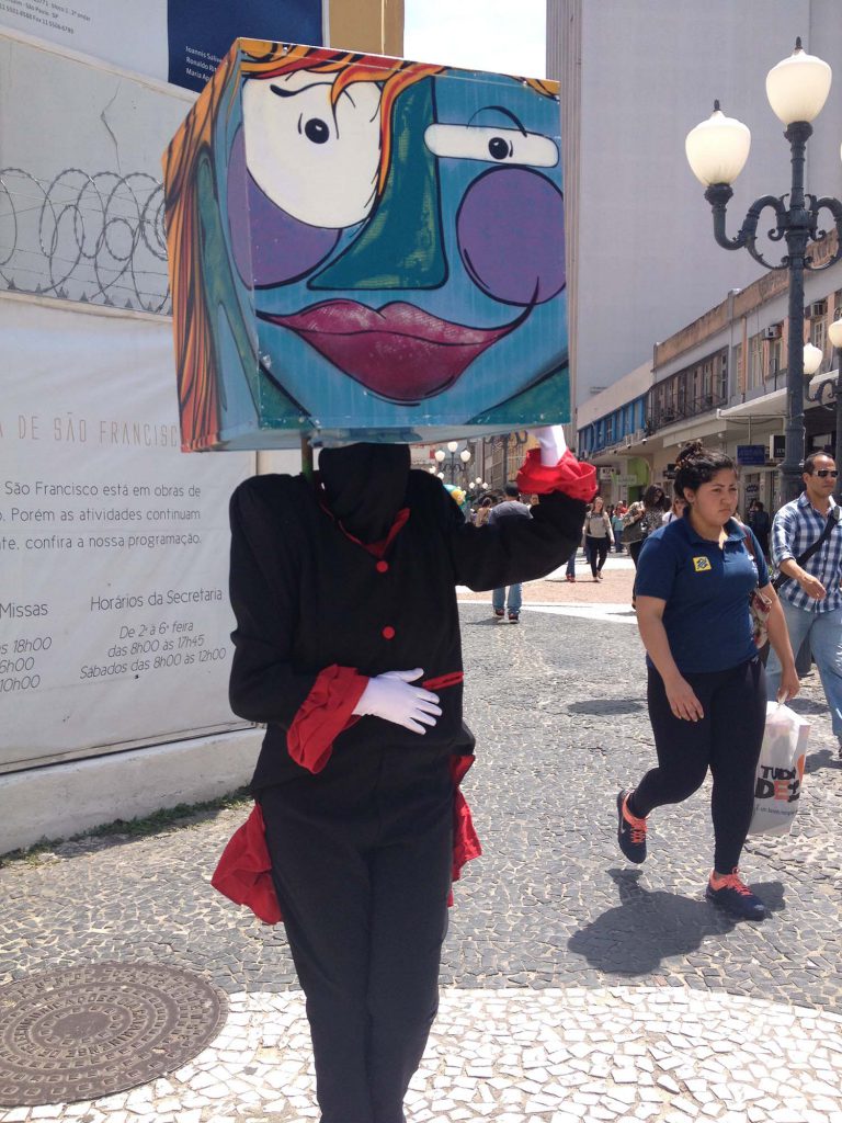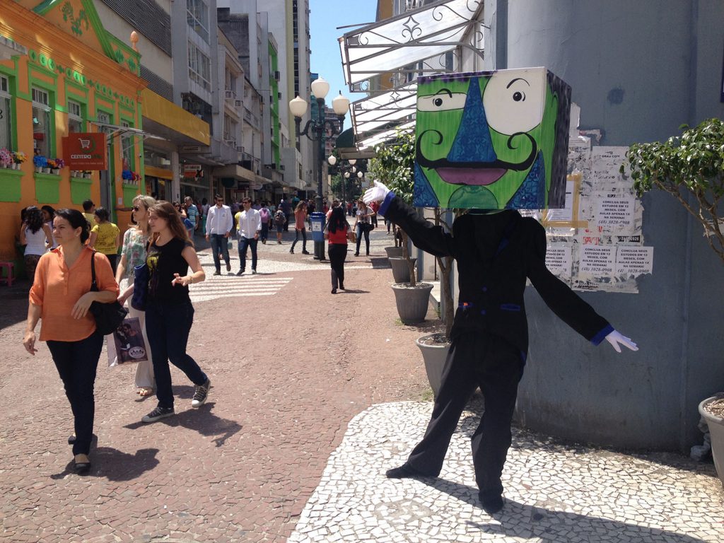 Sinopse: Os Cabeções é uma intervenção cênica urbana que propõe a interação com espectadores no espaço público. Os personagens, um casal de cabeças gigantes quadradas, interpelam transeuntes, interferindo no cotidiano ao distribuir poesias dentro de cápsulas de comprimido. A performance exercita uma leitura de mundo diferenciada, reinterpretando as relações que se estabelecem na cidade, impulsionando o diálogo e participação entre diversos segmentos da sociedade a partir da expressão artística.