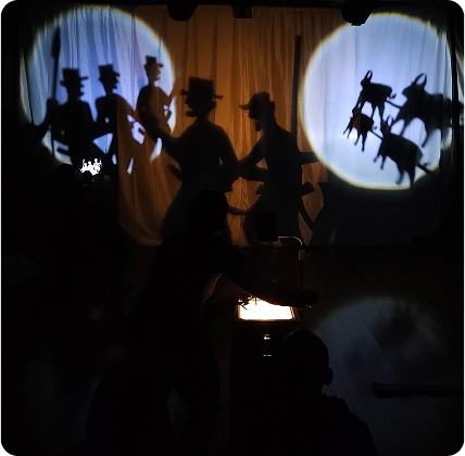 Técnica de Manipulação: Manipulação de objetos e silhuetas, bem como a projeção dos corpos dos atores.